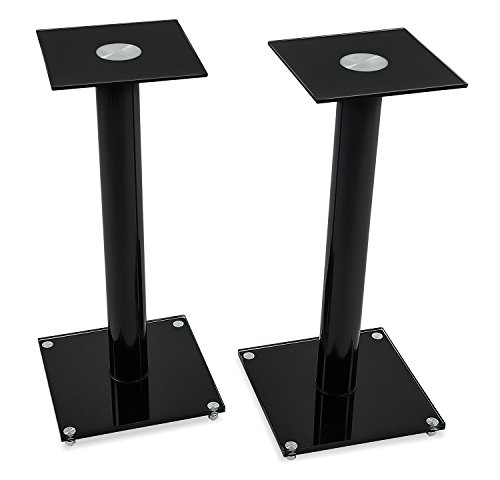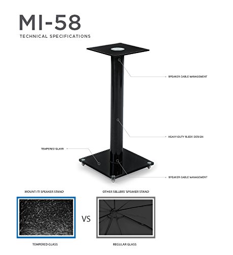 Mount-It! Floor Speaker Stands for Satellite Speakers and Surround Sound (5.1 and 2.1) Systems, Glass and Aluminum, Black (MI-58B)