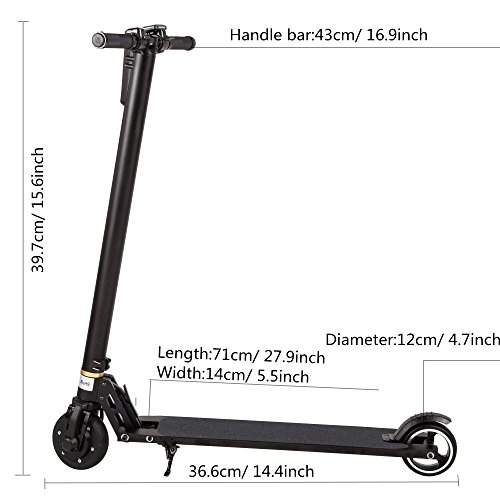 -. Feature : Made of aluminium alloy,only 19.8 lbs,but it can handle up to 220 lbs / Ride and be seen the built-in bright LED lights in night / Built-in rechargeable and safe LG lithium battery,with CE,ROHS.Don't worry about overcharging or battery malfunctions / With long arm SAE & metric hex key set that can fasten the screws in the scooter;The warranty is effective for 12 months / It is the smart scooter for urban commuters such as students or adults.The compact size and easy-fold function mean you can bring it up in home,school or car conveniently