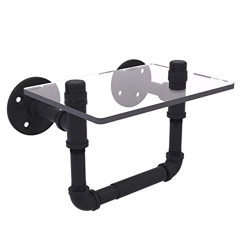 Allied Brass P-130-TPGS-BKM Dottingham Collection 18 Inch Towel Bar with Integrated Hooks Pipeline Toilet Tissue Holder with Glass Shelf