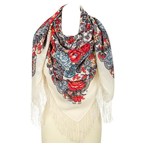 Product DescriptionPavlovo Posad Russian Shawl, Wrap, Scarf, Pashmina, Head Scarf, Neckerchief Ivory Wool0