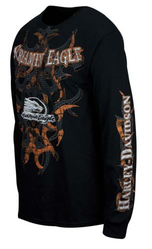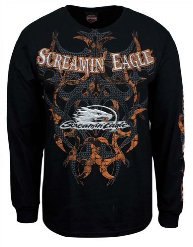 Product Description Harley-Davidson® Screamin' Eagle Black Long Sleeve Tribal Crown Shirt. Features a large Tribal eagle graphic on front and down left sleeve. Made of 100% Cotton. 0