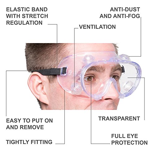 Lab painting goggles can be UNIVERSAL USED worn with other protective equipment including dust mask, dust coveralls, paint respirator, helmet or hard hat, and ear muffs. Also this lab goggles can be use with over glasses.