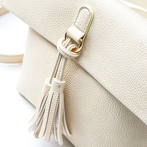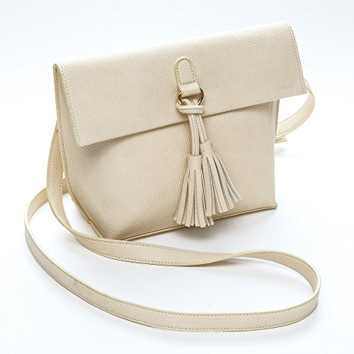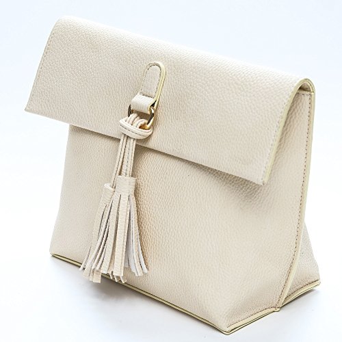 STYLISH: Classically styled handbag crafted with supple, high-quality synthetic vegan leather. Fold-over top flap with magnetic snap closure is embellished with classic gold hardware and cute tassel.