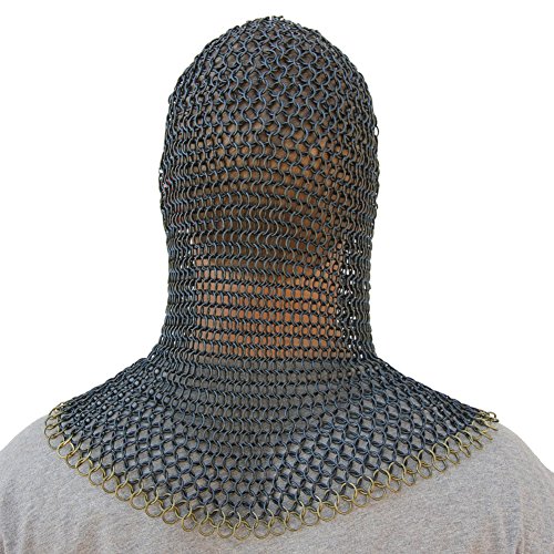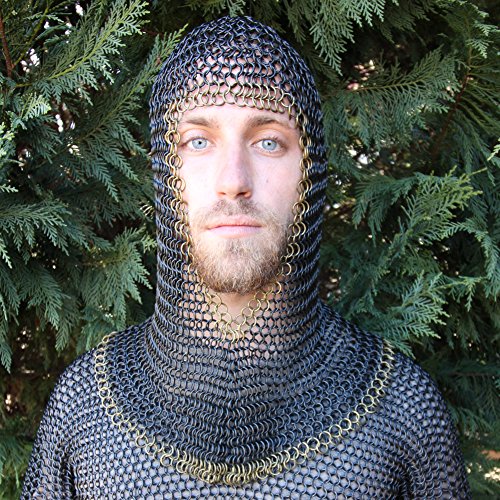 Medieval V Brass Face Mild Steel Chainmail Coif Armor