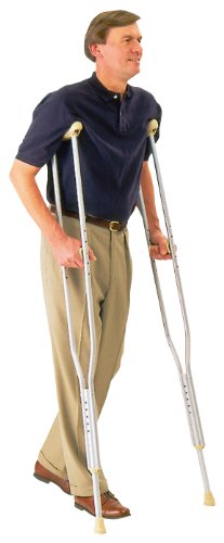 ReleaseDate : 2005-07-19 Studio : Carex Health Brands Publisher : Carex Health Brands Binding : Health and Beauty Product Description The Carex Push Button Aluminum Crutches are strong yet lightweight. The crutches can be adjusted by pushing a button and sliding the post to the proper height printed on the crutch. The printed height scale helps to eliminate error when sizing. Comes completely assembled with crutch pads, handgrips and tips. 0