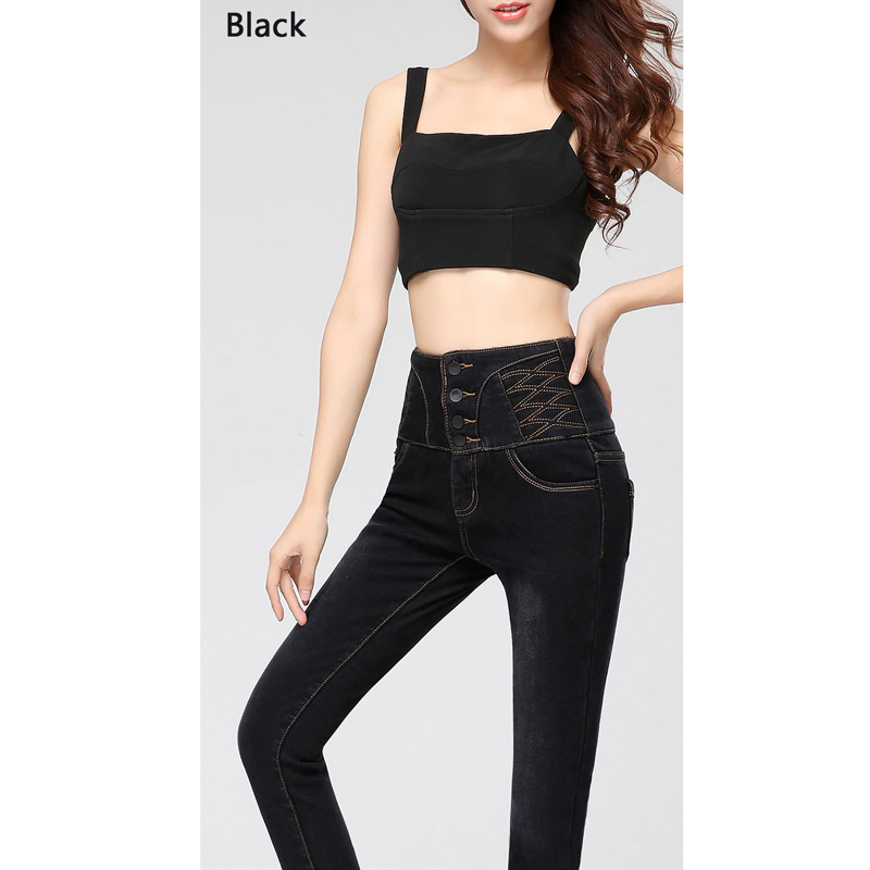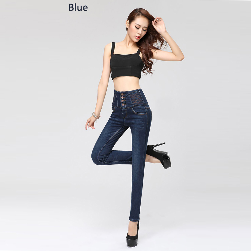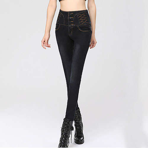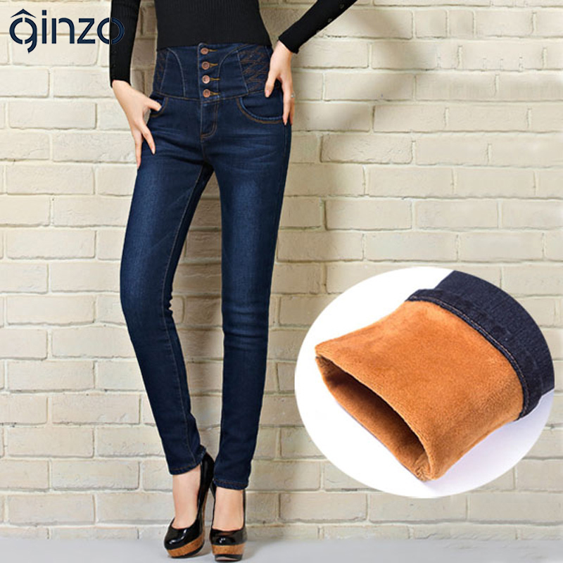 Women\ s winter warm thicken skinny jeans Lady\ s high waist plus velvet denim pants Female long trousers Free shipping