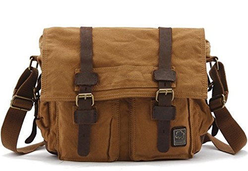 -. Title : KLAREN Men's Vintage Canvas and Leather Satchel School Military Shoulder Bag Messenger US Seller