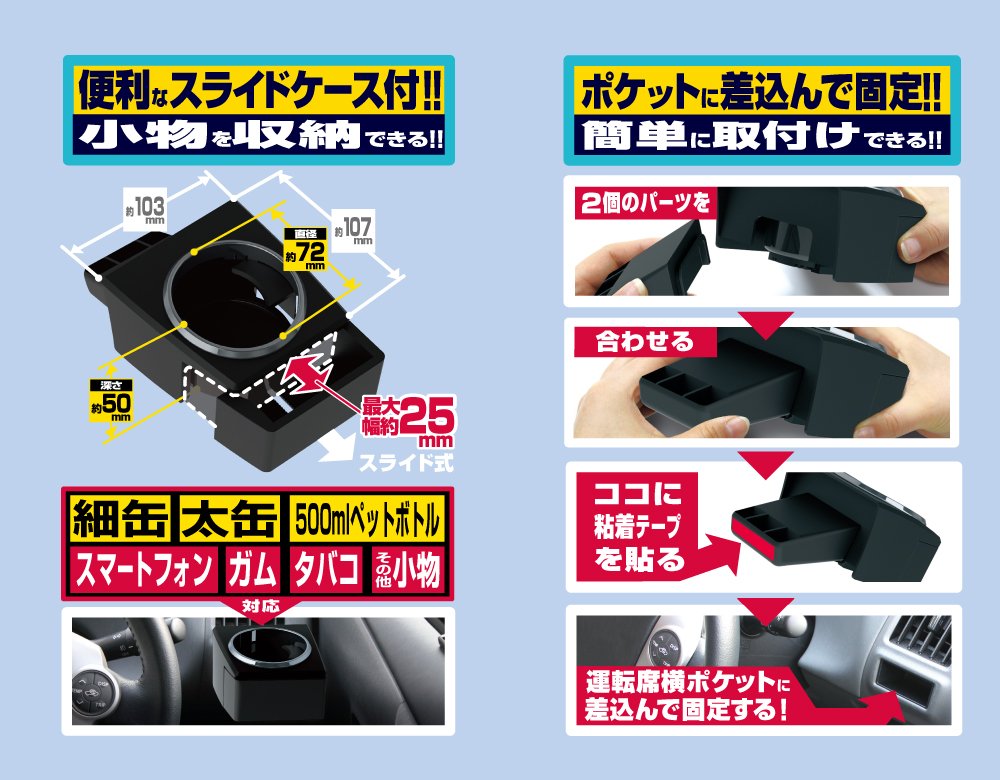 Mirareed SP-197 Japanese Car Toyota Prius Alpha Slide Cup & Drink Holder Bottle Cellphone Smartphone Holder