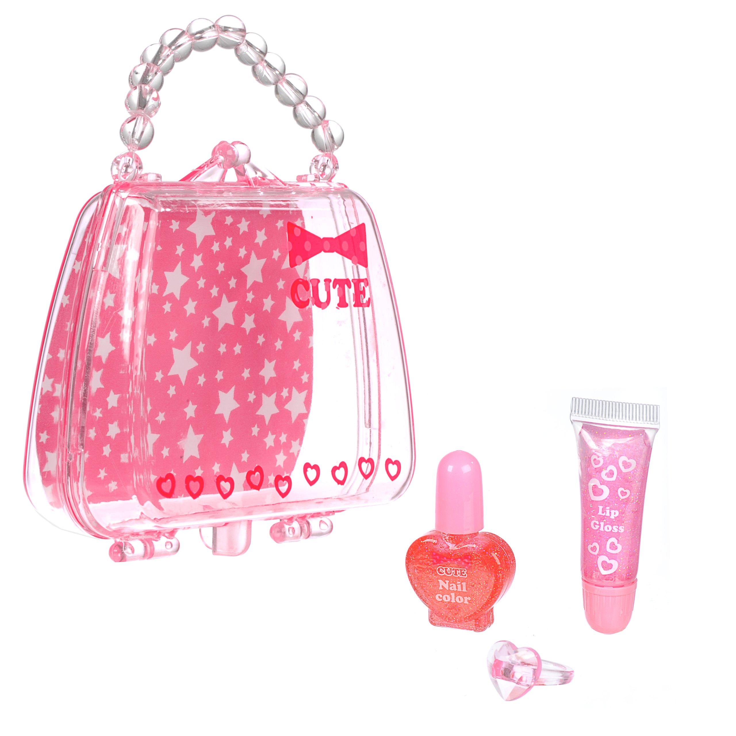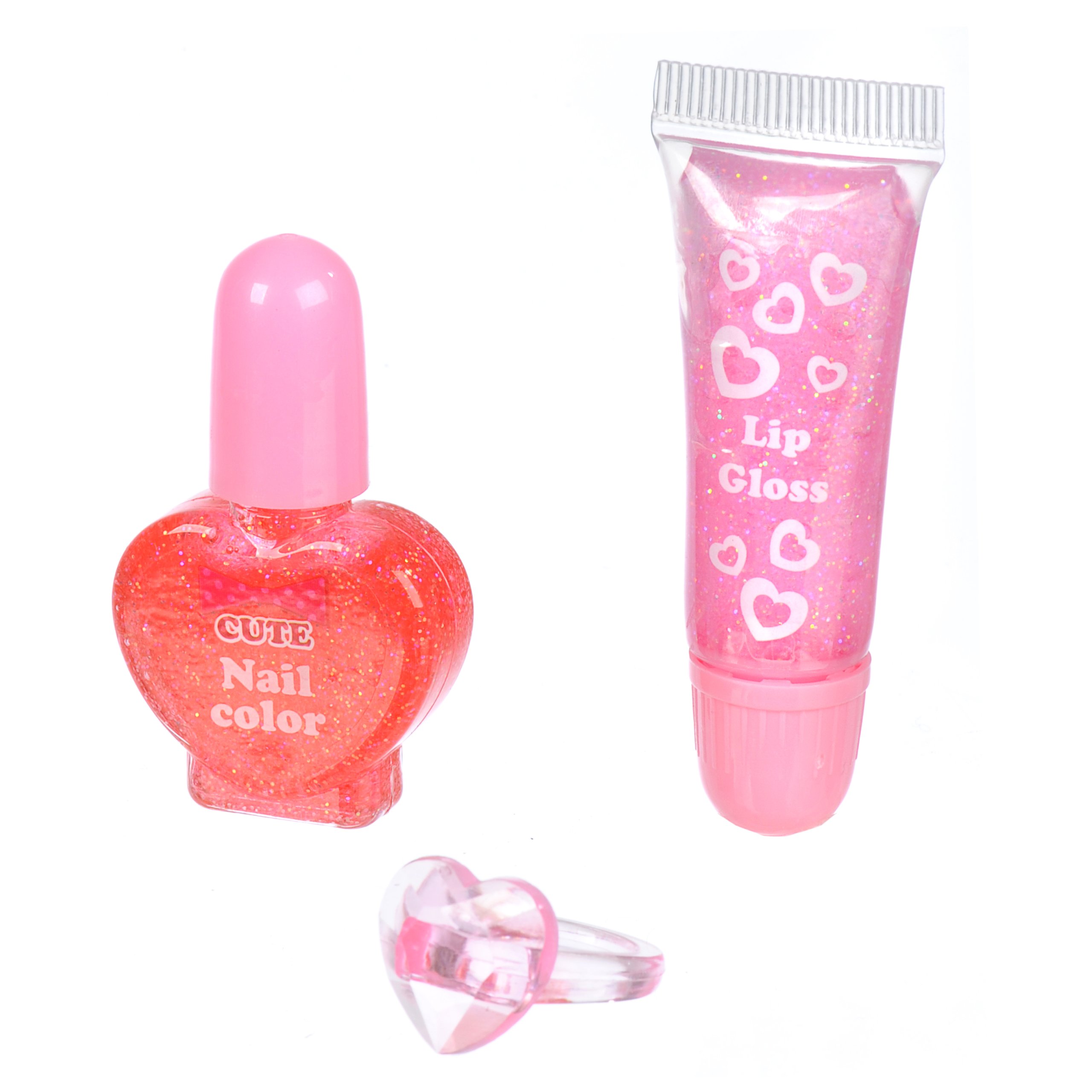 1 lip gloss, 1 nail color (water soluble), 1 ring