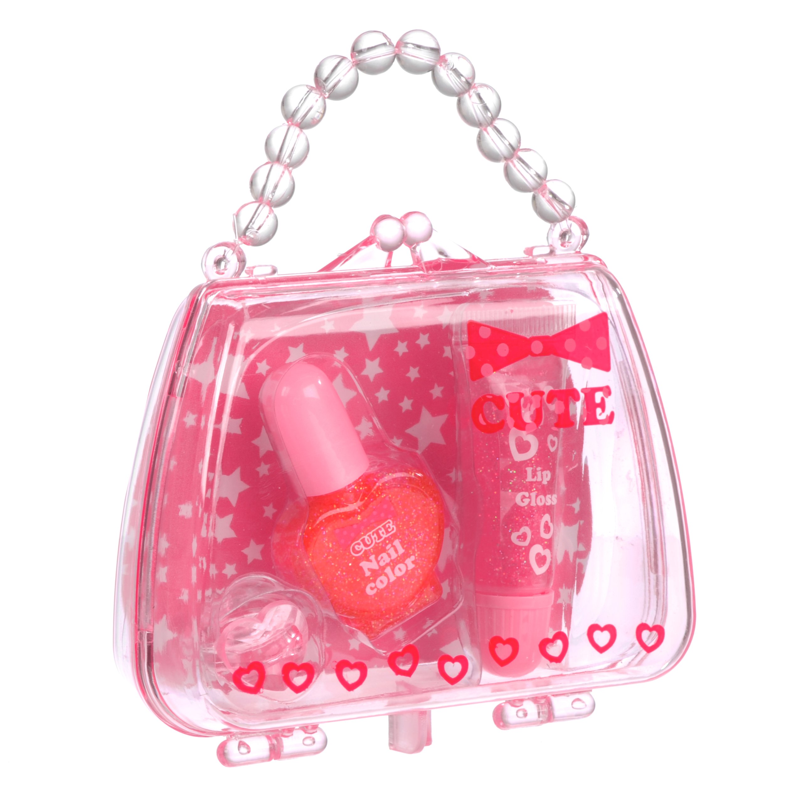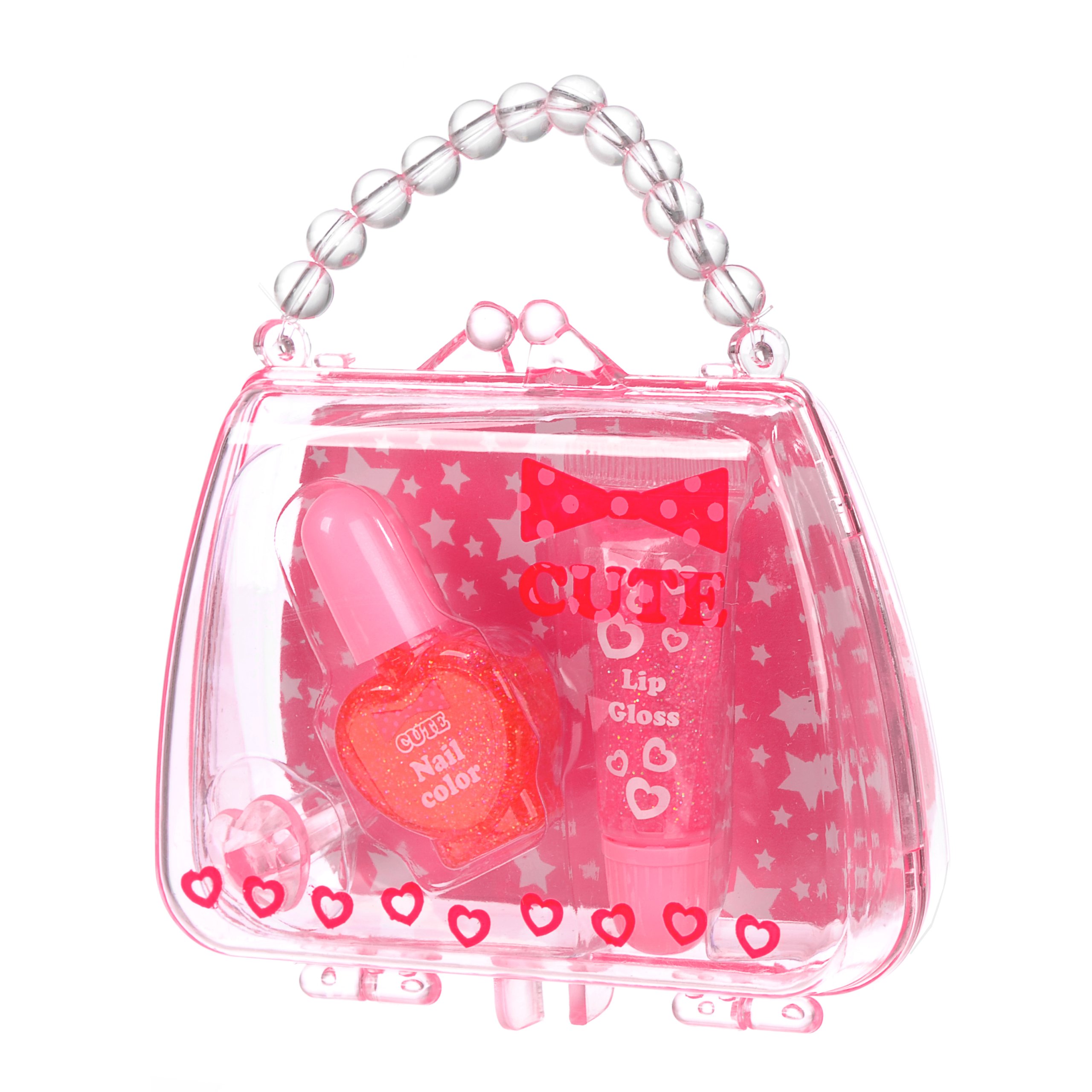 It is a cute bag-filled set of nail and lip gloss.