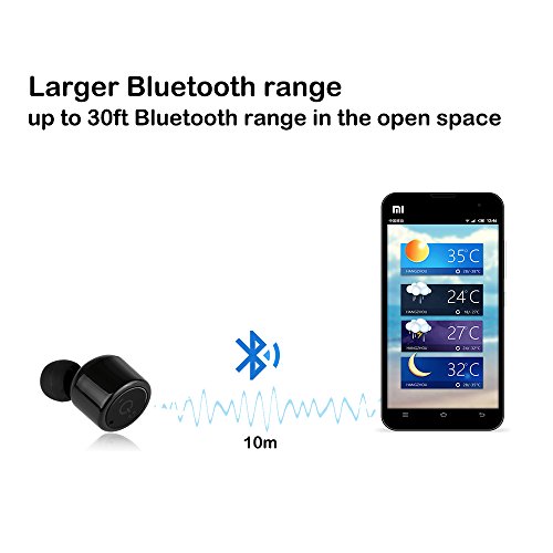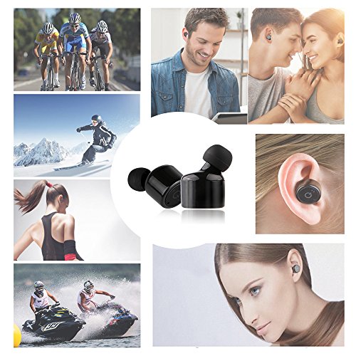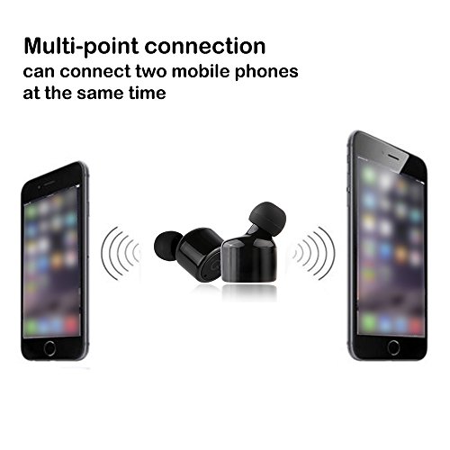 Type: X1T Wireless Bluetooth headset Material: ABS Quantity: 1pcs Color: Black Bluetooth Function: V4.2 CSR Profile Supported: A2DP1.3, AVRCP1.6, HSP1.2, HFP1.6, DL1.3 Bluetooth Working Range: ≤10m / 30ft Frequency Range: 2.4GHz Compatible with: iPhone, Samsung, and other Android Phone Charging Voltage: DC 5V Charging Time: Approx. 1.5h Work Time: One for 5-6h, a set for 2-3h Standby Time: One for 120h, a set for 60h Earphone Cable Length: No, ture wireless Earphone Size: 1.8*2.7cm / 0.7*1.1" (D*H)