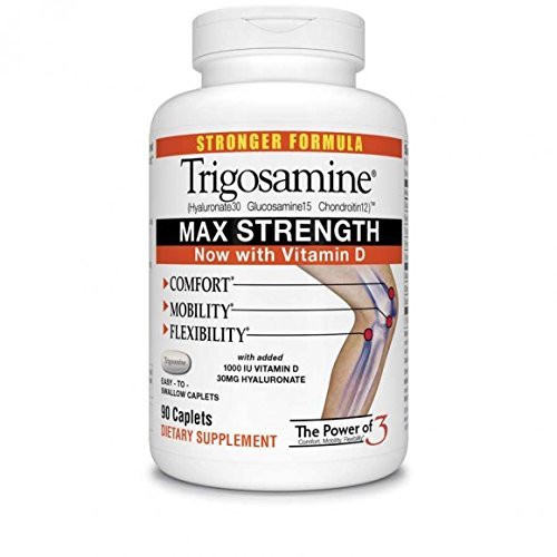 Triple-action formula that helps to support mobility, maintain flexibility and promote the comfort of your joints. New stronger formula with vitamin D for healthy bones. How It Works: Glucosamine and chondroitin are naturally occurring components of cartilage, the connective tissue that serves as a cushion between your joints. Hyaluronate is a naturally occurring compound found in joints and connective tissue. It is important to support healthy joint cartilage to help maintain joint comfort and flexibility. New maximum strength Trigosamine delivers well-researched levels of glucosamine and chondroitin, which have been found to support joint comfort, mobility and flexibility. This advanced formula also contains hyaluronate, providing you with a triple-acting formula to help support healthy joints. An added 1000 IU of vitamin D helps to provide support for strong bones, making Trigosamine a well-rounded joint support formula