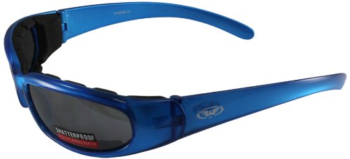 Global Vision Motorcycle Riding Glasses with Mirror Finish (Blue Frame/Smoke Lens)
