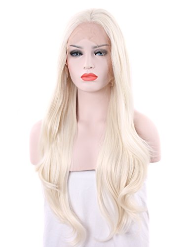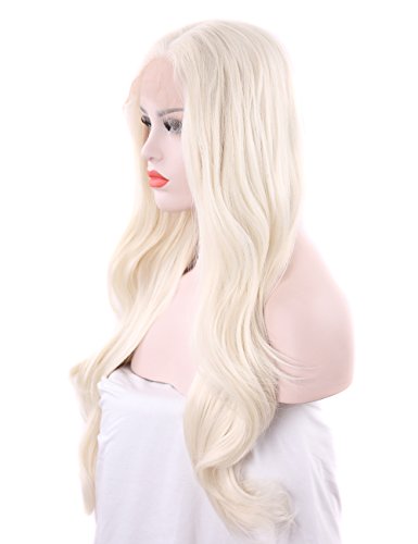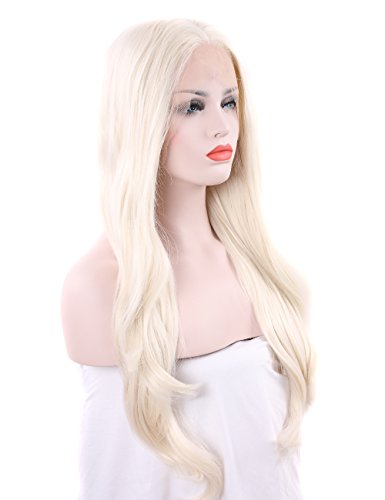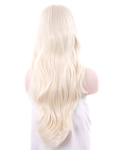 Tripal Hairs White Platinum Blonde Wig Heat Resistant Synthetic Lace Front Wigs Natural Wavy 60# Color 24 Inches
