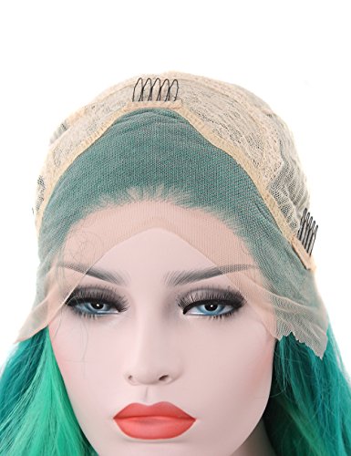 - [Synthetic lace front wig] 1. Material: Soft heat resistant synthetic fiber hair. No tangling, no shedding. 2. Soft and strong Swiss lace, with 2.5” hand-tied lace at middle front, and baby hair around perimeter. Realistic and natural looking. 3. 150% density that looks full and beautiful.