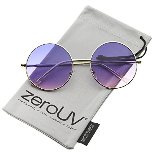 zeroUV - Bohemian Full Metal Frame Gradient Flat Lens Oversize Round Sunglasses 54mm