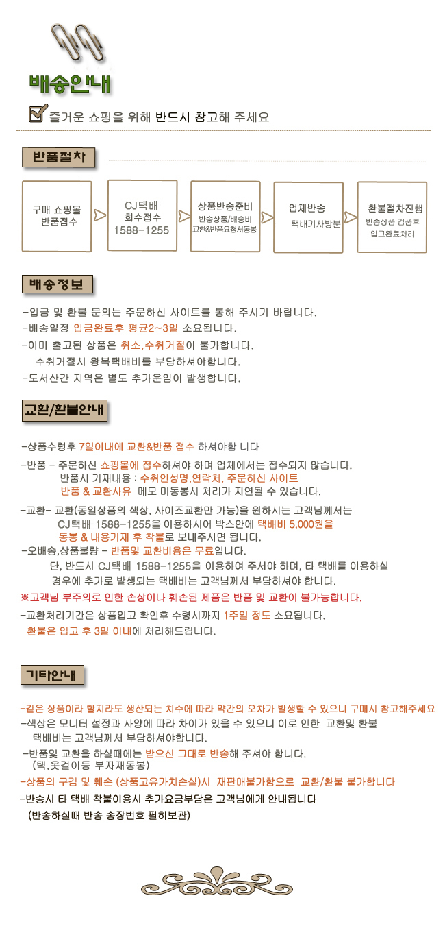 특이 사항 배송, 변경, 반품 환불에 대한 문의는 위 연락처로 문의 주세요.