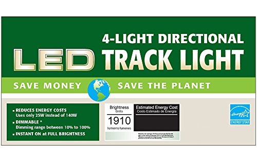 Envirolite LED track lighting is designed to complement any interior decor and save money. This kit comes with a curved bar and 4 decorative lights. This track lighting kit features a protective brushed nickel finish, and the LED lights pivot and rotate to direct the light where it is needed most. The LED light engine produces the same light as four 40-watt incandescent bulbs using only 25-watt of electricity to save you money, and there are no light bulbs to replace. These track lights are perfect for the living room, kitchen, bedroom and other rooms.Feature