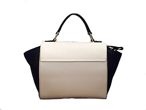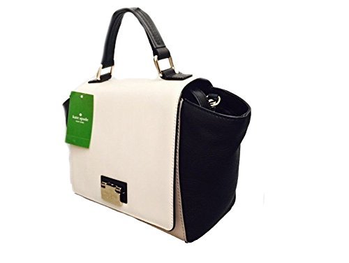 This gorgeous Kate Spade Magnolia Park Laurel is wrapped in cream and grey tone colorblocked leather with black pebbled leather sides and 14k light gold plated hardware. This structured Laurel is lined in custom Kate Spade printed logo black sateen fabric and features a zippered pocket and two open slip pockets. The flap top secures with KSNY engraved hardware. A single leather top handle has a drop of about 4 inches, or you can use the removable and adjustable shoulder / cross-body strap. There's top stitch detailing throughout, and a flattened bottom panel. The sides are gusseted with a dog lease clasp that can be used to pull them in towards one another, or unclasp it for expansion and a wider bag. The overall measurements are approximately 10 inches (L) x 9 inches (H) x 4 inches (W). A brown Kate Spade dust bag cover is included.Feature