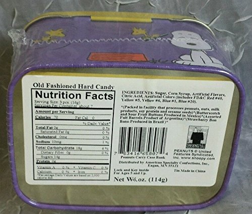 Studio : American Specialty Confections Publisher : American Specialty Confections Binding : Toy Product Description MINT Condition - still in factory shrink-wrap! Peanuts Snoopy and Woodstock metal BANK has a lock and key and a carrying handle! This unique bank measures approx. 4 1/2" x 3" x 3" and includes a yellow plastic handle. would like to carry their lunch to work or school! Contents: Old-Fashioned Hard Candy. Since this is an older collectible, it is up to buyer to decide if candy is still edible! 0