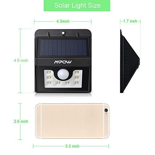 BRIGHT LED SOLAR LIGHTS: Mpow Lights now have 8 bright LED lights. Bright enough to offer excellent illumination and turn the dark space into a bright lighted space. Great detector for security, automatically turn on at night