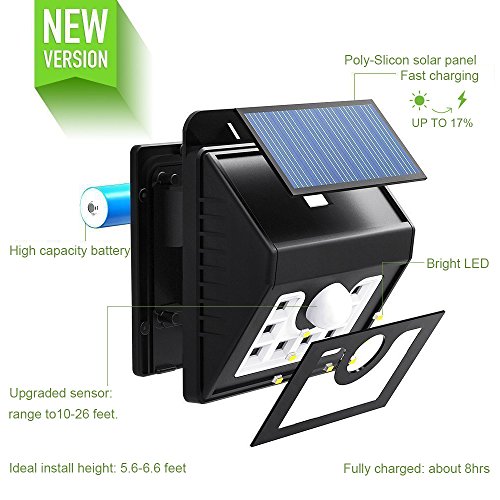LED SENSOR LIGHT WITH LARGER SENSOR: Built-in motion detector, the sensor ball head of Mpow Solar Light gets bigger and more powerful so as to have a longer sensor length of 10-26 feet. Suggested install height is 5.6-6.6 feet