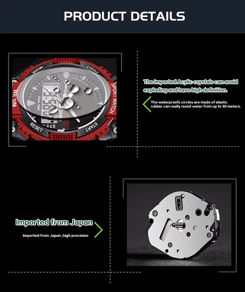 Feature:Water Resistant,LED display,Luminous,Multiple Time Zone,Stop Watch,Back Light,Complete Calendar,Shock Resistant,Diver,Chronograph,Auto Date,Alarm,Swim,Repeater