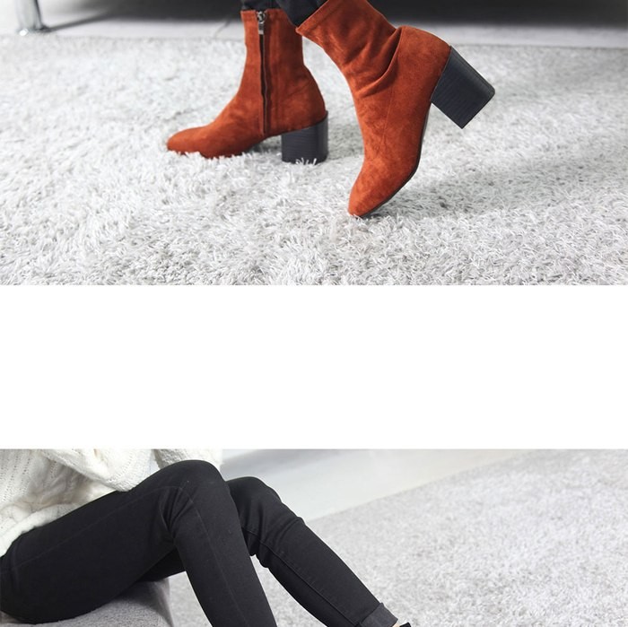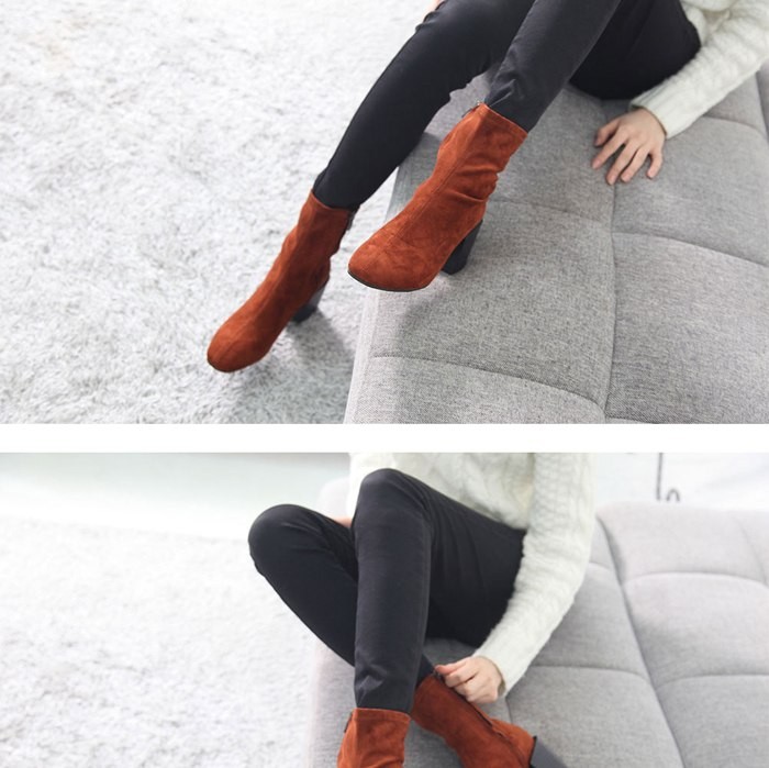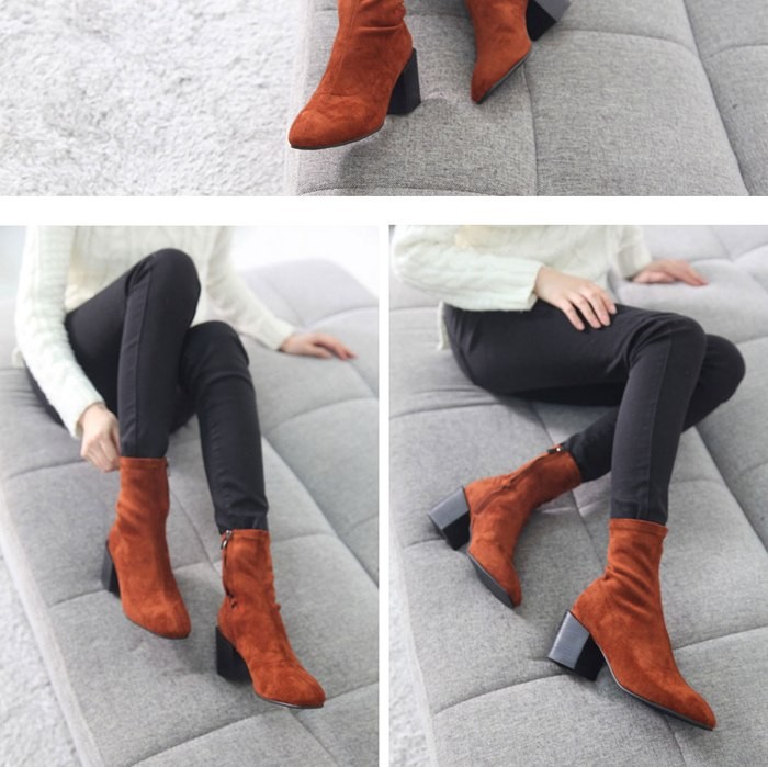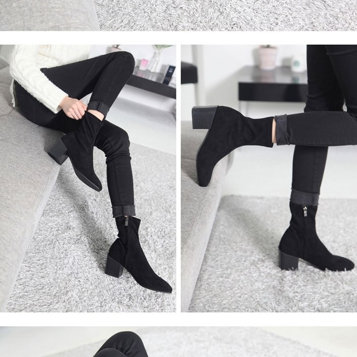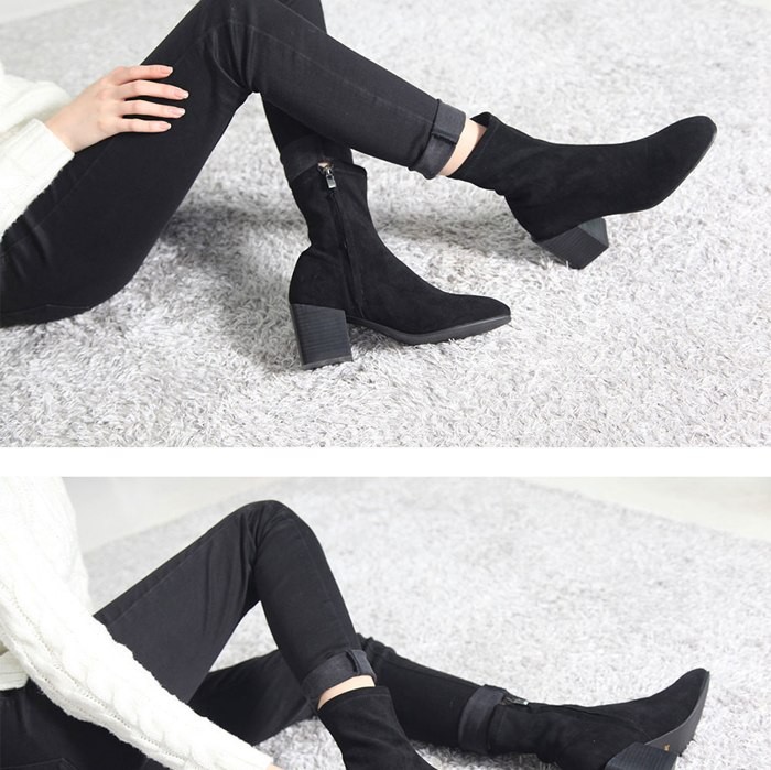 商品名:ストレッチブーツ レディース チャンキーヒール 太ヒール スエード調 2017 秋冬 ファッション 靴 婦人靴