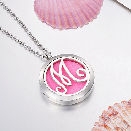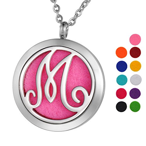 VALYRIA Monogram M Aromatherapy Essential Oil Diffuser Necklace-Stainless Steel Letter Locket Pendant with 11 Refill Pads