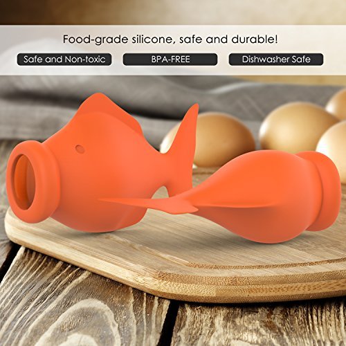Soft silicone chamer is easy to squeeze, even for one hand operation and children. Simply place it over the yolk of an already cracked egg, slightly squeeze the fish and release to swallow the egg yolk up into it and then just pour the yolk in another bowl.
