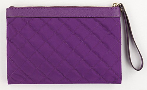 -. Feature : Violet purple color / Gold-tone accents, Zipper closure / Interior â€" 1 large slip slot, 1 zipper pocket, 6 card slots, Exterior â€" metal embellishment / Length 10.5â€/26.25 cm, Depth 1â€/2.5 cm, Height 7â€/17.5 cm / Fabric: Leather, Nylon
