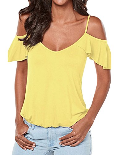-. Title : Stcgoo Cut Out Cold Shoulder Shirt Womens Ruffle Casual Tee Blouse