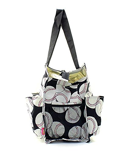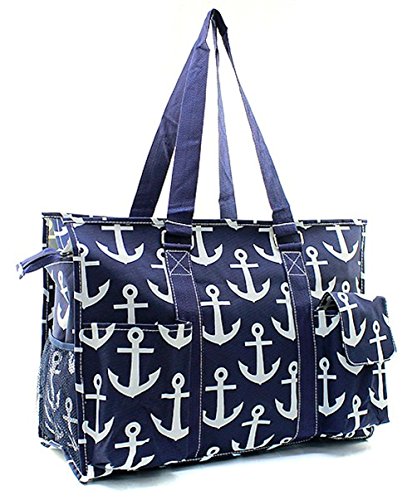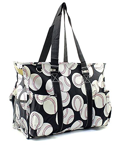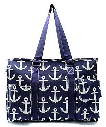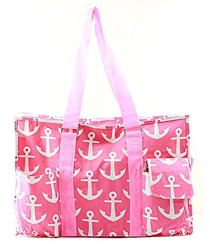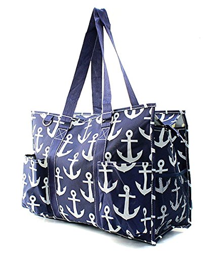 -. Feature : Cute all purpose utility tote bag. Light Weight. Collapsed when not used. / Constructed with water resistant nylon material. Zip top closure. Key ring in front. / Size of the bag is 18 x 13 x 8. Large size tote bag. Can be used as diaper bag, shopping bag, overnight, weekender bag, beach bag, storage bag, craft bag and more! / Great organizer bag: 2 front open pockets, 2 rear pocket with one velcro flap closure. In addition, side mesh pockets on both sides, and mini side pocket for small items. / Double carrying handles. Handle drop approximately 14". Great gift idea for your friends and family.