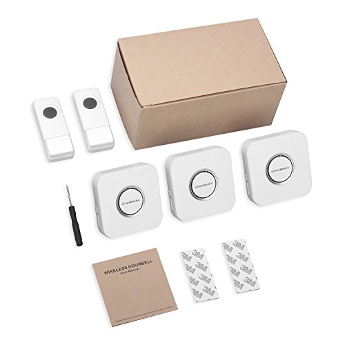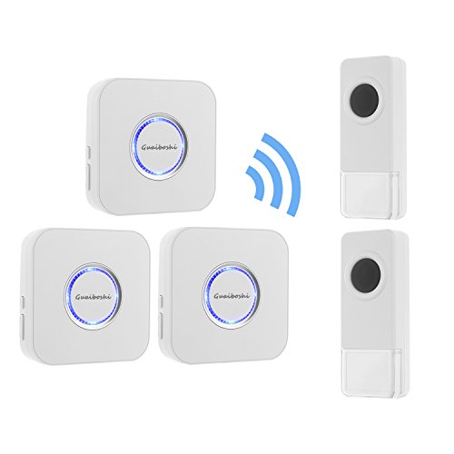 Guaiboshi Wireless Doorbell Kits with 2 Remote + 3 Plugin Receivers, Waterproof IP44 No Batteries Required for Receivers 52 Chimes 4 Volume Level, White