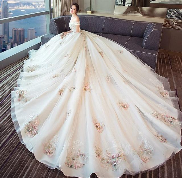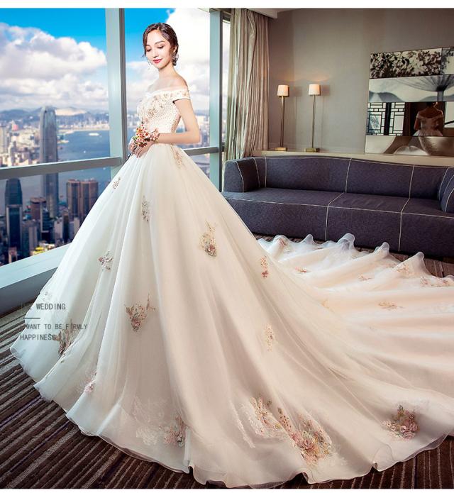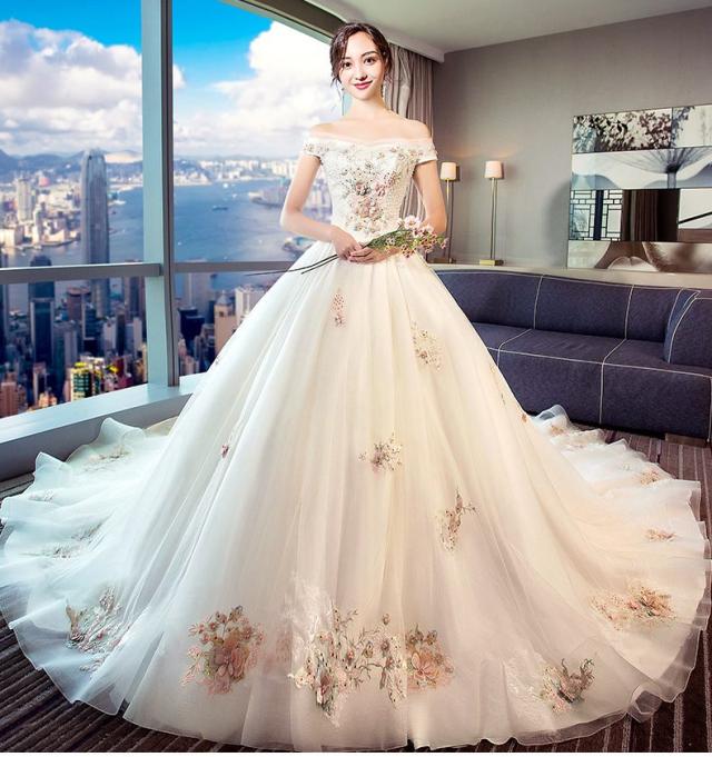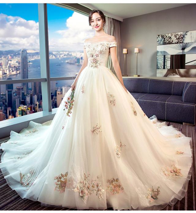 オフショルダ- カラー刺繍 3D花 Aライン 袖ありレース 刺繍 ロングドレス ウェディングドレス 花嫁ドレス 結婚式 二次会 披露宴 前撮り フォトウェディング スピンドル レースアップ 調節可能 ホワイト系 シンプル 大きいサイズ マタニティ L 2L 3L 4L 5L プリンセス 真珠 ビーズ刺繍 ゴージャス 豪華 ロマンティック きらきら アンティーク 韓国風