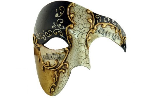 -. Feature : Gold Lining Musical Black Venetian Half Masquerade Mask Phantom Vintage Design
