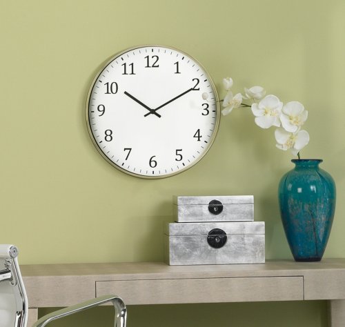 - Title : Wilburton Satin Nickel 14" Round Metal Wall Clock