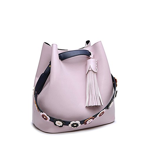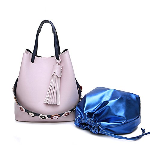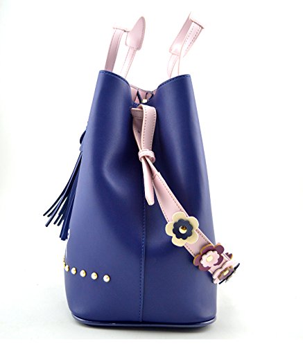 -. Title : Mn&Sue Stylish Tassel Drawstring Bucket Hobo Lady Purse Casual Shoulder Tote Bag Set with Flower Strap