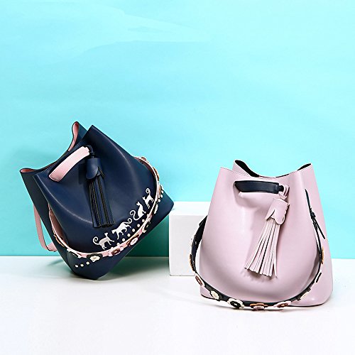 -. Feature : This bags is made of high quality pu leather. Magnetic button closure. / Pure color and simple style, tassel design looks very fashion and beautiful. / Come with a wide detachable floral shoulder strap and a pouch. Two bags for you. And you can wear it as a shoulder bag, cross-body bag, top handle handbag to meets different needs. / Large capacity unique design can comfortably hold your kindle, ipad, phone, wallet, cosmetic, umbrella and other things. Perfect for using in office, school, dating,travel or any other daily occasions. / Approximate Size(Large): 11"(L) x 11.8"(H)x 7.08"(W). Please accept 1"-1.5" error.