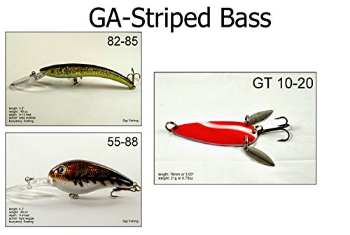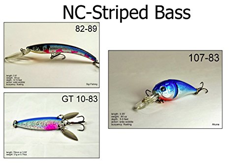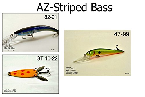 -. Feature : We have done the research and so you don't have to, We have lures chosen in packs specifically for your state and fishing pleasure / Please select your state to get the 3-pack of lures chosen by our staff to catch striped bass in your area / These packs are of great value giving you savings of up to 50 percent compared to other name brand lures, Makes a great gift / Akuna is a manufacturer of quality fishing products, We offer many unique colors and convenient packs for your fishing enjoyment, The lures in these packs are intended for freshwater use only / Click ASK OWNERS in Q&A section below for recommendations, usage, etc. Share with us your fishing stores, We would love to hear from you