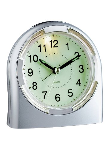Heavy sleepers rejoice! This stylish alarm clock gets louder and LOUDER until you wake up and shut it off. Dial lights up when you hit the light/snooze button. Snooze button resets every 4 minutes. Uses 1 AA battery (not included). 4"H x 4"W x 2 1/2"D. Quartz.Feature