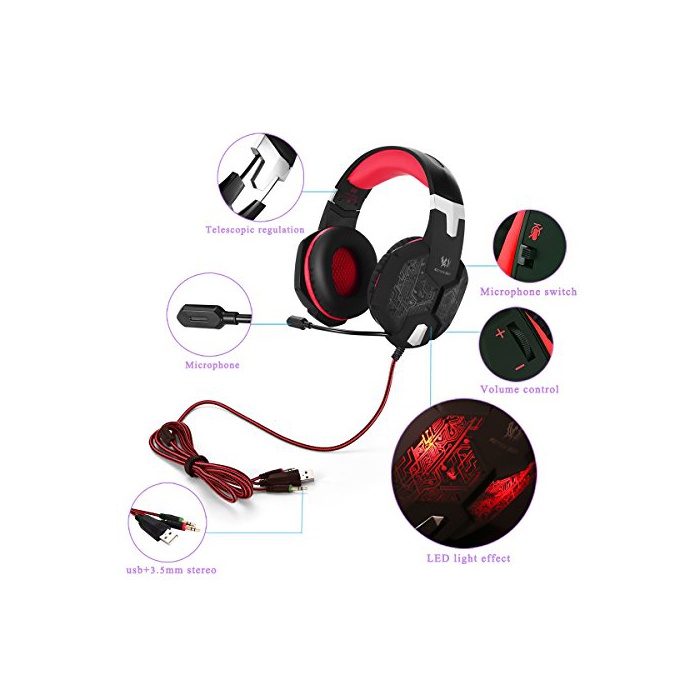 원본상품명: ゲム用ヘッドセット、PC用マイク、KOTION EACH G1000キミュトサウンドクラリティオバイヤステレオノイズアイソレションバスゲムヘッドホンブリジングLEDライトボリュムコ