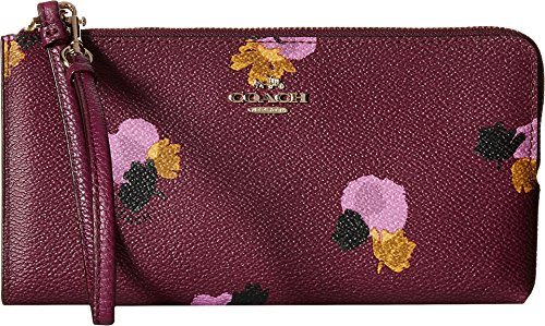 Printed coated canvas. Twelve credit card pockets. Two open multifunction or bill pockets. Zip coin pocket. Zip-around closure. Imported.