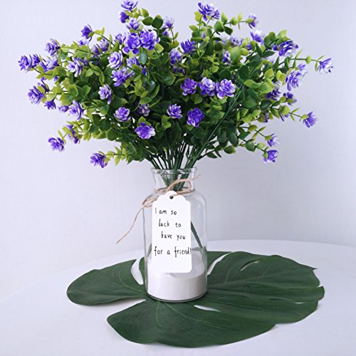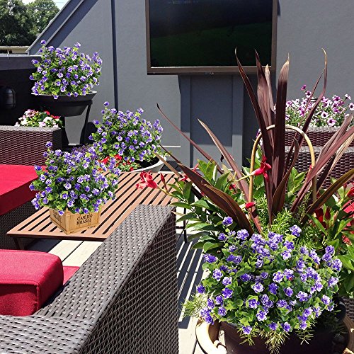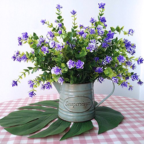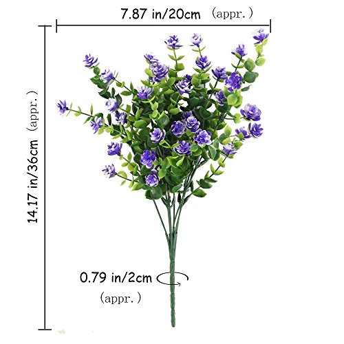 These Purple Artificial flowers are Waterproof and Outdoor UV Resistant.So they can keep a fresh look in outdoor or indoor.Each is made with poly and on a wired stem. You can easily bend the stem of a flower plant without breaking it.They are allowing for many different visuals.