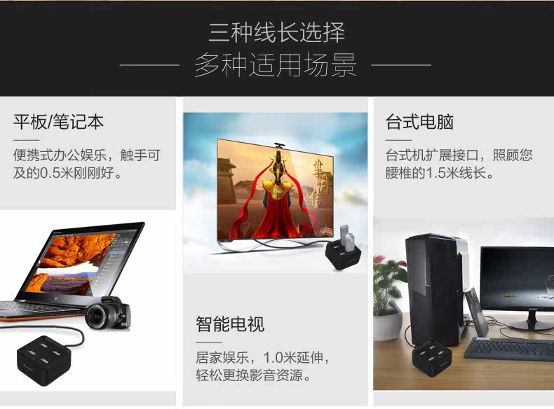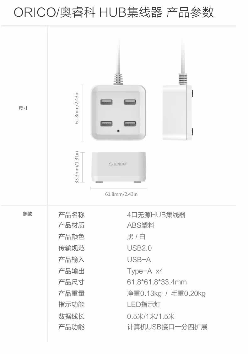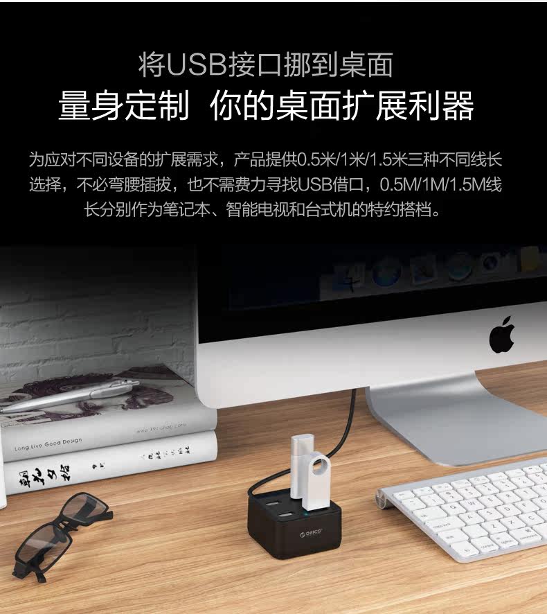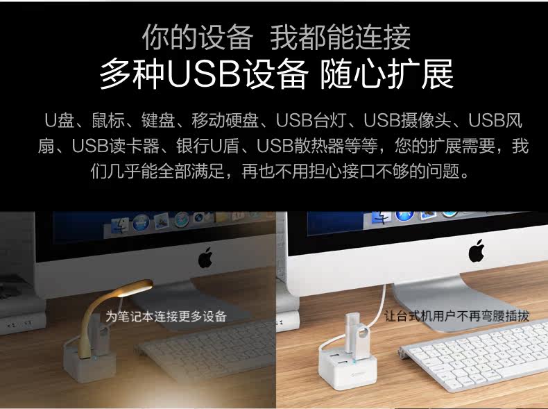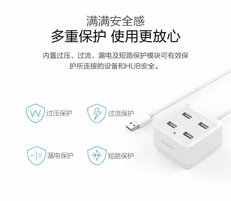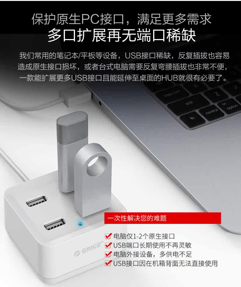 ORICO多接口USB分线器一拖四笔记本电脑高速扩展集线器HUB转换器