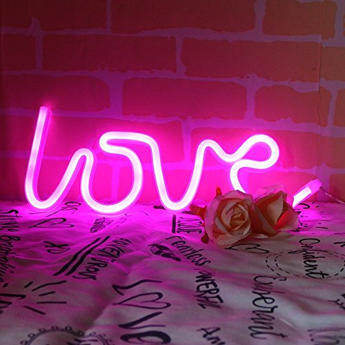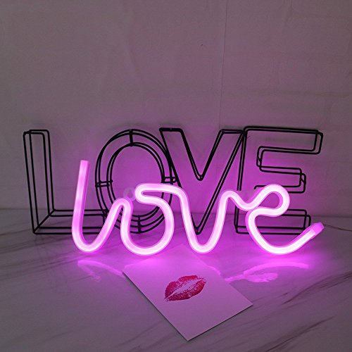 Decorative LED Love Shaped Neon Night Light With Pink Lamp-Neon Night Light Operated By Battery/USB for Children's room Party Christmas Wedding Decoration Pink