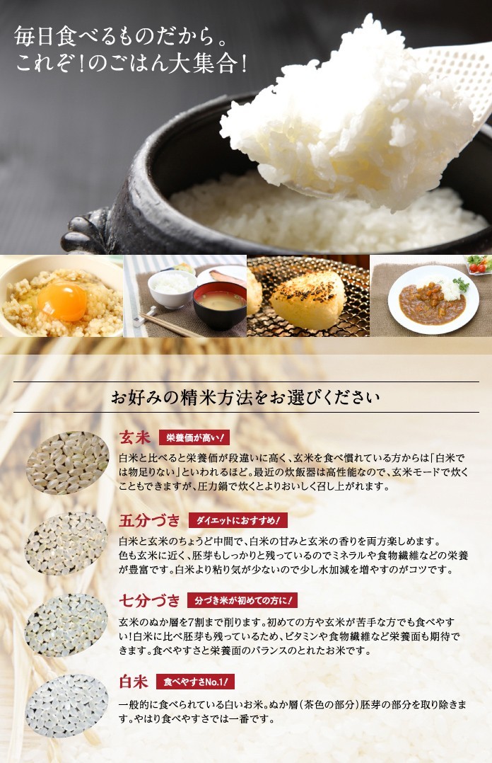 秋の詩は、コシヒカリの系統で、米質が軟らかく粘りが強いのが特徴です。また、粒が大きいのでしっかりとした炊飯米が出来上がります。※分搗き精米商品は、精米方法により目減りいたします。精白米の場合は、約1割がヌカとなります。