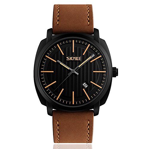 COMFORTABLE LEATHER BAND STRAP and DURABLE STAINLESS STEEL CASE COVER: high quality leather wristwatch band strap provide mens with comfortable wearing experience. Stainless steel waterproof watch case cover make it super durable.
