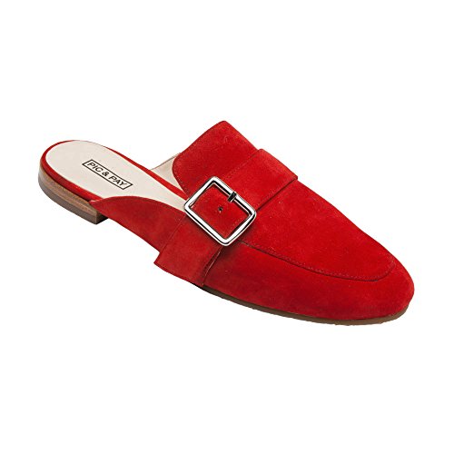 -. Title : Pic & Pay (New Fall) Dacia Women's Loafers - Backless Slip-on Leather Mule Red Suede 6.5M