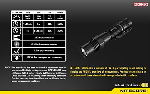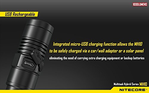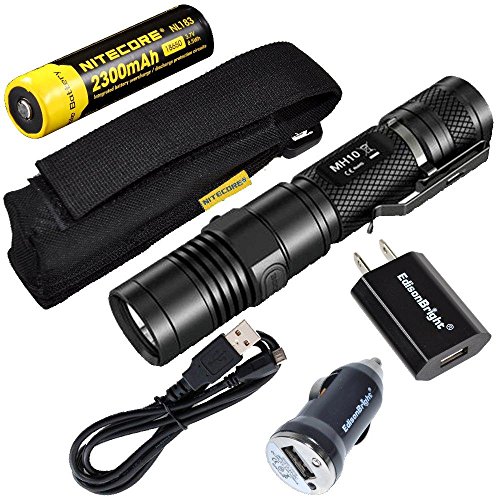 Nitecore MH10 CREE XM-L2 U2 LED 1000 Lumen USB Rechargeable Flashlight, 18650 rechargeable Li-ion battery, USB charging cable, Holster with EdisonBright AC/CAR USB power adapters bundle